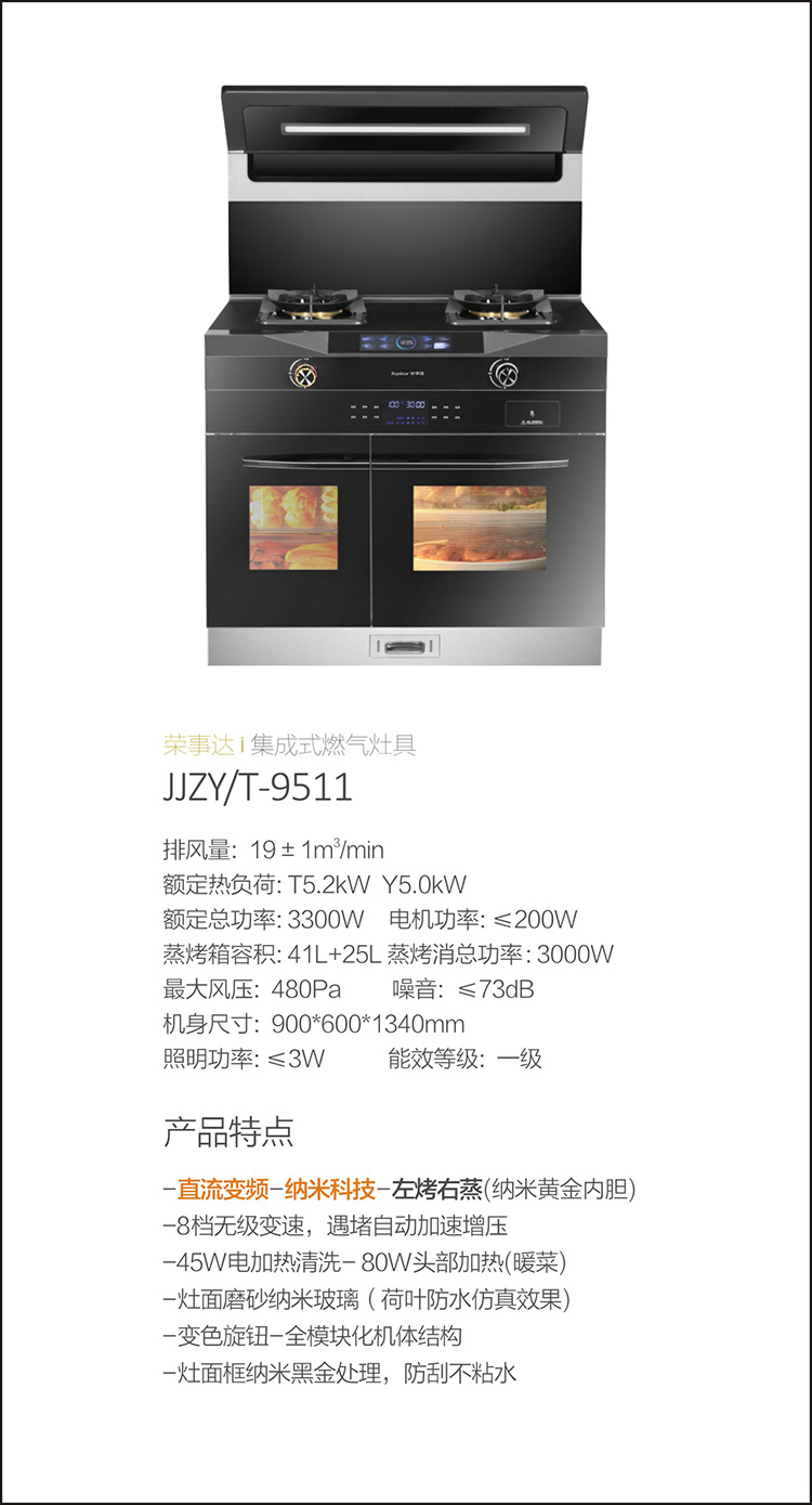 *同層同溫:在榮事達實驗室規定條件下測試,熱風烘焙模式下180℃條件下,同層溫差小于7℃。